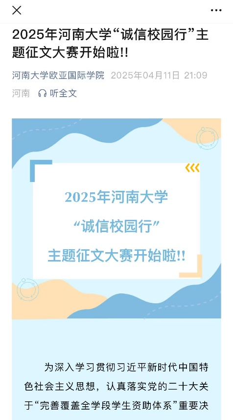 4月11日,学院借助官方微信公众号等平台,发布征文活动的详细通知。通知涵盖活动主题、参赛要求、时间安排等关键信息。