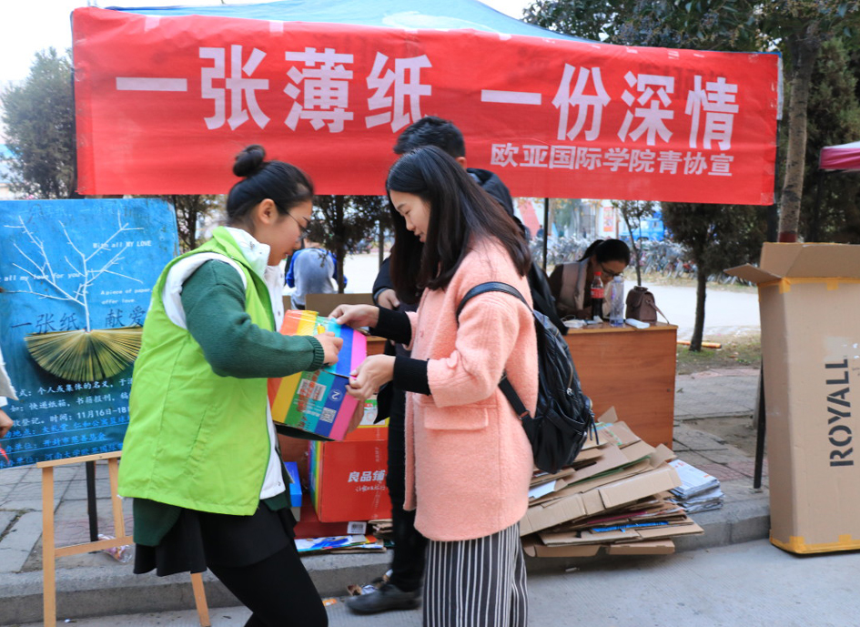 2016年11月16日至18日,我院青年志愿者协会举办了“一张纸”活动。“一张纸”活动是由国家慈善总会在2008年发起的,意在将我们日常生活中一些已经没有使用价值的纸质废品收集起来,,我们将卖出这些纸张,所得到的钱将全部捐献给开封市慈善总会,去帮助那些患白血病等重大疾病的孩子们。