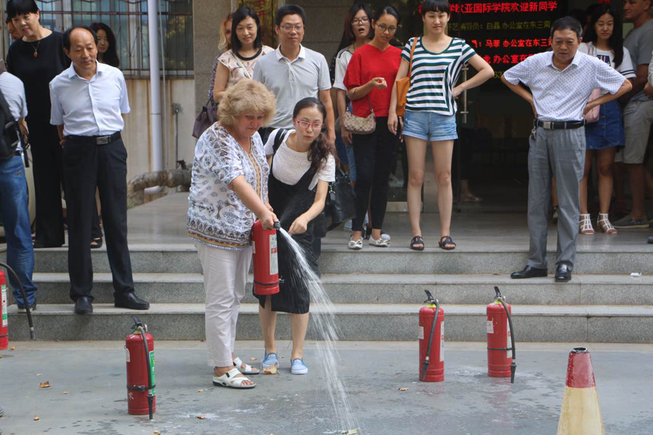 学院邀请开封市消防支队金明大队宣培专干吴路路、吴华洋在学院二楼报告厅召开专题讲座,向大家讲解了日常消防安全检查、应急与预防、防火灭火、灭火器使用方法与技巧、学校火灾预防与疏散自救的相关知识;借助近年来全国发生在高等院校的火灾视频资料,从高校火灾的预防、火灾发生的人为因素和工作隐患等方面进行分析。之后,全体师生在学院楼前广场开展了灭火演练,实地进行了干粉灭火器、清水灭火器实际操作,师生们都情绪饱满、沉着冷静地参与演练。
