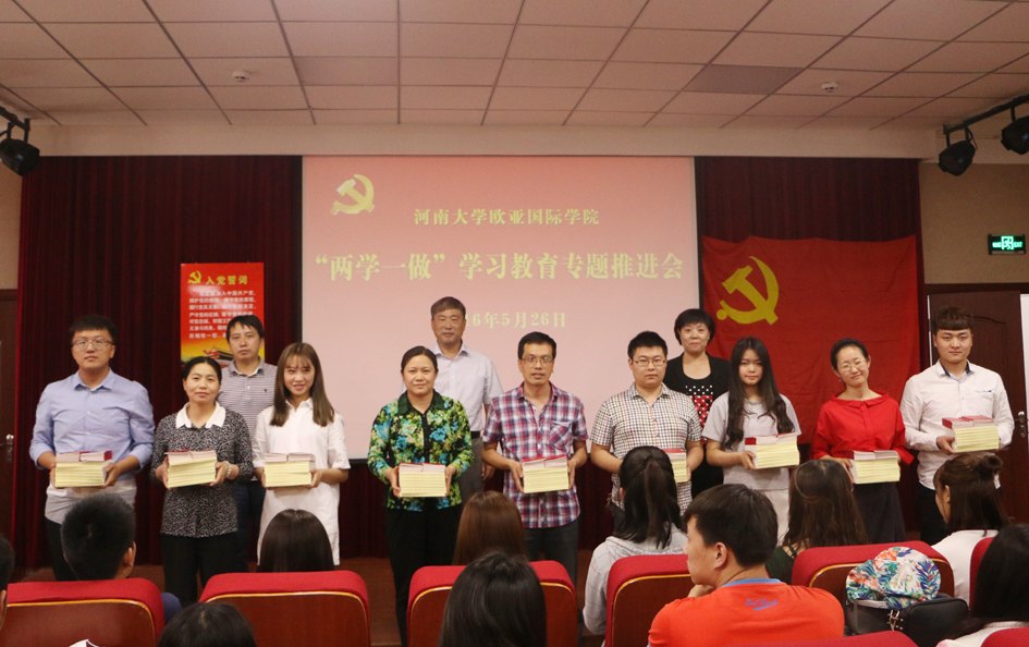 为推进学习教育,学院党委为全体190名师生党员采购了首批200本《中国共产党章程》、《习近平总书记系列重要讲话读本》,作为党员学习的重要内容,做到人手一册。会上,出席学院领导谷跃峰、楚艳霞、季超和学院教工党支部,学生第一、二党支部进行发放仪式。