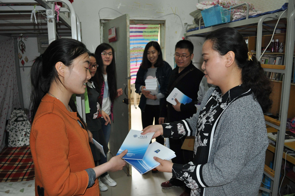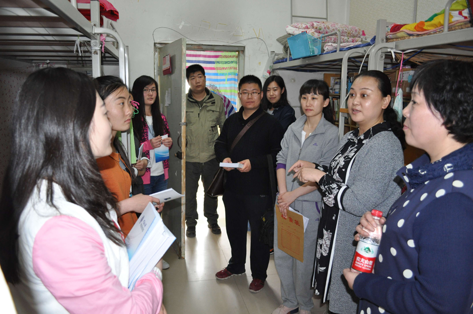 为深入贯彻全校安全工作会议精神,加强平安校园建设,全面深入推进SPBO手机版 学生安全教育,营造安全、稳定、文明的校园环境。2016年4月8日,校学生处副处长常凤香、学院党委副书记楚艳霞,在校园管理处、学院学生工作办公室相关负责人、辅导员及学生干部陪同下,走访了我院金明校区学生宿舍,发放安全手册,全面开展学生安全知识教育。