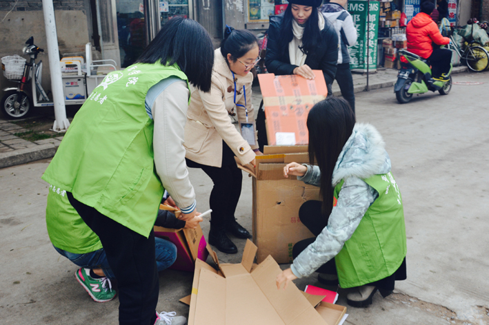 在“一张纸 献爱心”现场活动中,学院青年志愿者协会的志愿者们在寒风中坚持奉献自己的爱心,用片片纸张传递自己的爱意,积极向学生们宣传本次慈善活动,为贫困家庭的儿童们尽自己的一份力量。在志愿者的积极活动与宣传中,大学生们踊跃参加慈善活动,将废旧纸张捐至代收站点,冒雨参加活动,希望可以通过一张张纸帮助到贫困患病儿童。志愿者们为了能够收集到更多的废旧纸箱和箱子,在19日夜晚组织了“扫楼”活动,让更多的人了解到“一张纸”是如何献爱心的,同时也深切感受到了同学们对慈善活动的热情。20日白天,虽然室外下着小雨但也无法阻挡志愿者们的热情,他们去往各个快递网点,一个一个向取过快递的同学们介绍活动,并支持他们捐出手中的快递箱,献出自己的微薄之力。在“一张纸 献爱心”活动过程中,我们看到了河大学生的爱心,看到他们在帮助他人的路上坚持到底,也看到了欧亚学院志愿者们的无私风采!