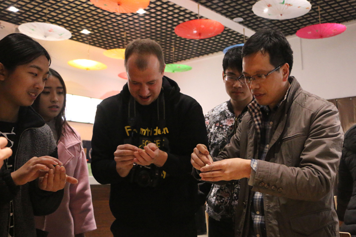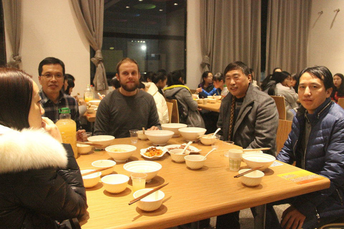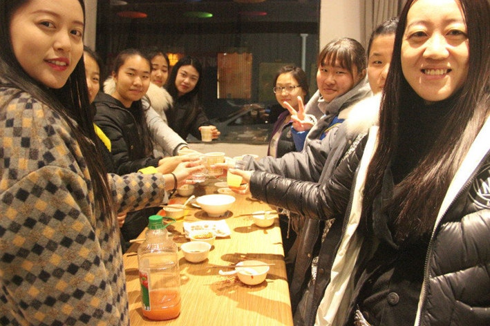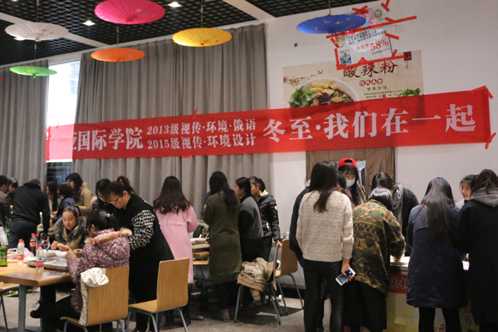为了让同学们感到节日的温暖,增进同学沟通交流,培养团体协作精神,感受“自己动手,丰衣足食”的乐趣,缓解学习压力,用轻松的心态对待即将来临的期末考试。2015年12月19日、20日、22日,我院2015级环境设计,2015级视觉传达设计,2013级视觉传达设计、环境设计、俄语,先后在明伦校区老干训餐厅开展“冬至•我们在一起”主题活动。SPBO手机版 党委书记谷跃峰、副院长季超,艺术学院副院长李建设,外籍教师谢尔盖、达米尔,部分任课教师、辅导员老师,和同学们一起共度佳节。