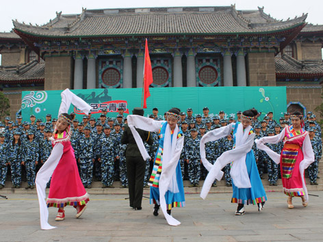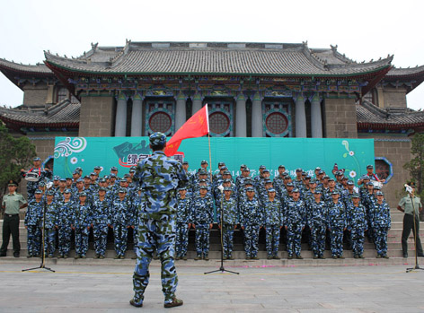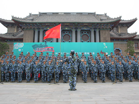 大礼堂前昂扬斗志,军歌声中唱响希望。2014年9月13日下午大礼堂前,河南大学2014年“绿色与青春”新生军训歌咏比赛在此隆重举行。学校与军训团相关领导出席并观看了比赛,比赛评委由学校各相关部门老师和艺术学院专业老师担任。