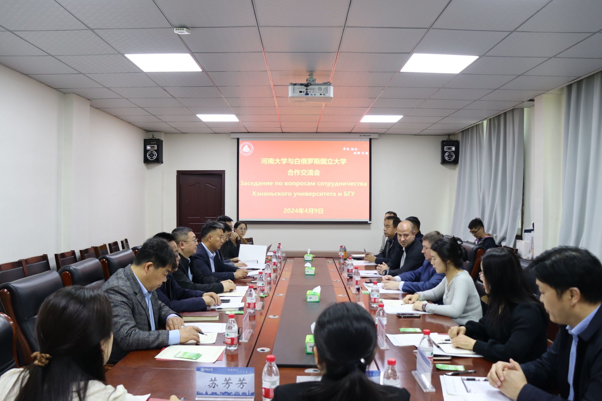 4月9日15:00,河南大学与白俄罗斯国立大学合作交流会在SPBO手机版 309会议室召开。白俄罗斯国立大学新闻学院院长阿列克谢·维克多罗维奇·别利亚耶夫,河南大学国际合作与交流处副处长郭向前、文学院院长武新军、新闻与传播学院院长王鹏飞、国际汉学院党总支书记梁建忠等相关学院有关负责人出席会议,SPBO手机版 师生代表参加会议。会议由SPBO手机版 院长王振存主持。