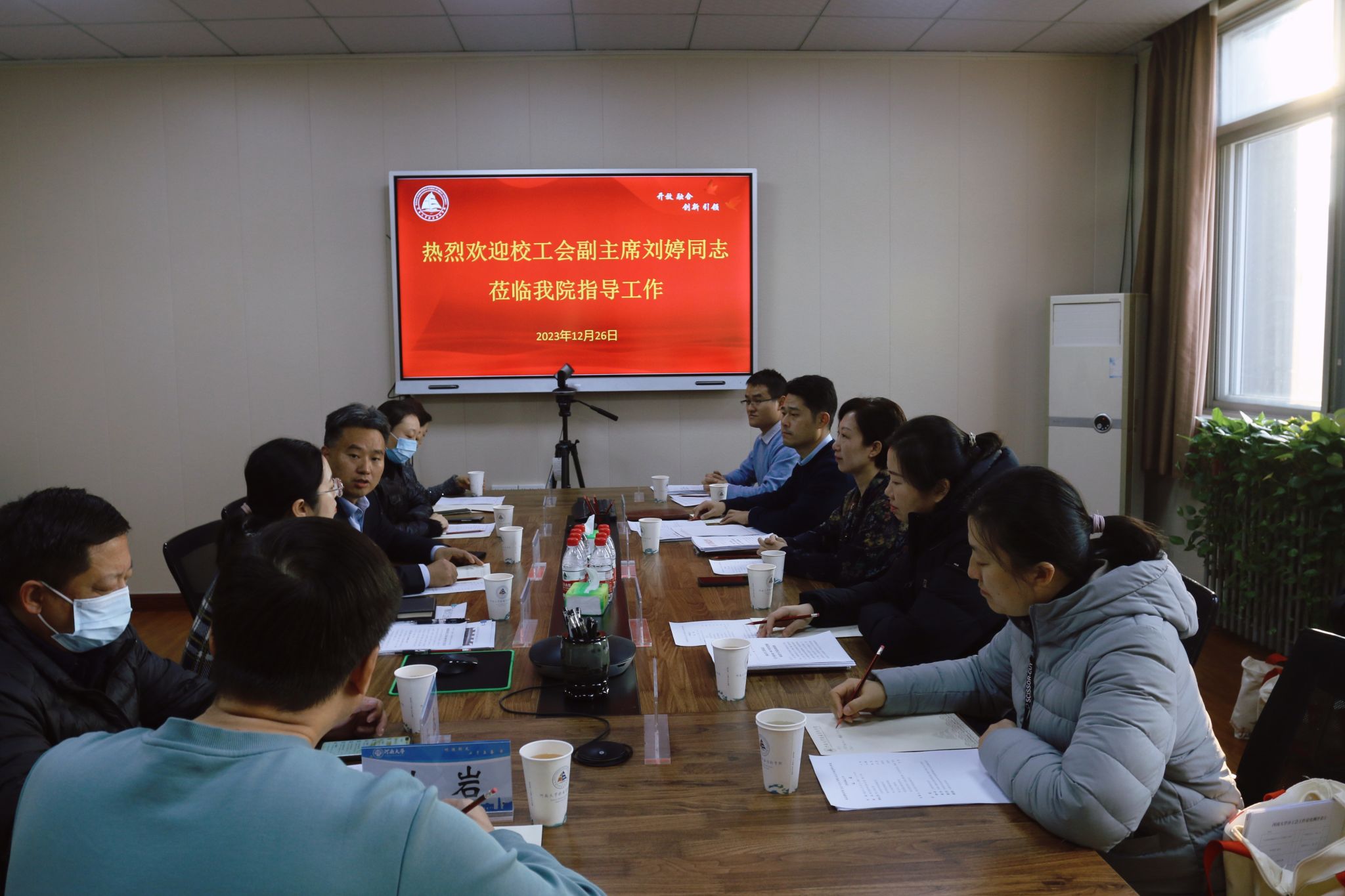 12月26日上午,校工会副主席刘婷一行莅临SPBO手机版 调研指导,就学院2022-2023年度工会工作开展情况进行实地走访和座谈交流。生命科学学院党委副书记宋永鹏、体育学院党委副书记韩雪、校工会宣传部部长李二勇、校工会女工部部长李俊玲陪同。SPBO手机版 党委书记王振存、党委副书记贺颖及负责工会工作的相关老师参加。