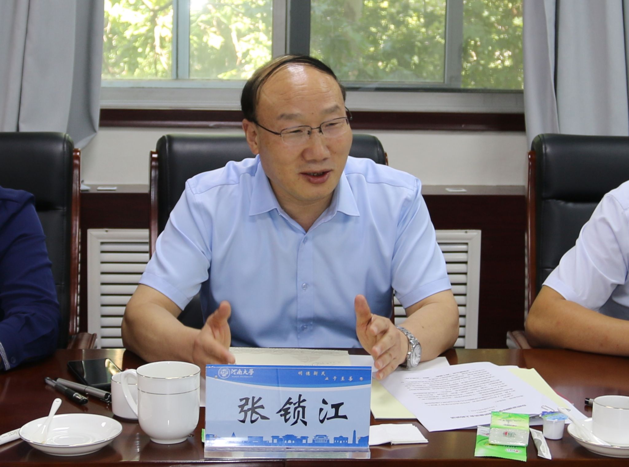 张锁江对学院师生凝心聚力、锐意进取、共谋发展的精神状态表示高度肯定。他认真听取了师生对于学校和学院发展提出的诉求,就师生们提出的问题和建议一一予以回应,并结合丰富案例和自身经历,指导大家进一步解放思想,攻坚克难、开拓创新,立足长远规划,结合学院实际,以宏大的战略眼光、实事求是的务实态度和坚定的发展信念,谋求更大的发展。张锁江表示,学院要始终着眼于服务国家战略需求、服务社会和人民福祉的办学初心,结合河南大学新时期研究型、综合性、国际化的发展目标定位,提高站位、准确定位、凝练特色,注重国际化文化建设、国际教育品牌塑造;要创新体制机制,深化有组织、建制化教学科研,加大与国内外一流高校交流合作,多走出去看一看,积极学习先进办学理念和经验;要长抓师资队伍建设,加大高层次领军人才引进力度,高度重视青年人才培养;要增强战略谋划意识,科学编制发展规划和建设方案,整合学科优势资源,努力建设国家级平台,早日实现办学层次水平的突破,更有力地支撑学校一流大学建设。
