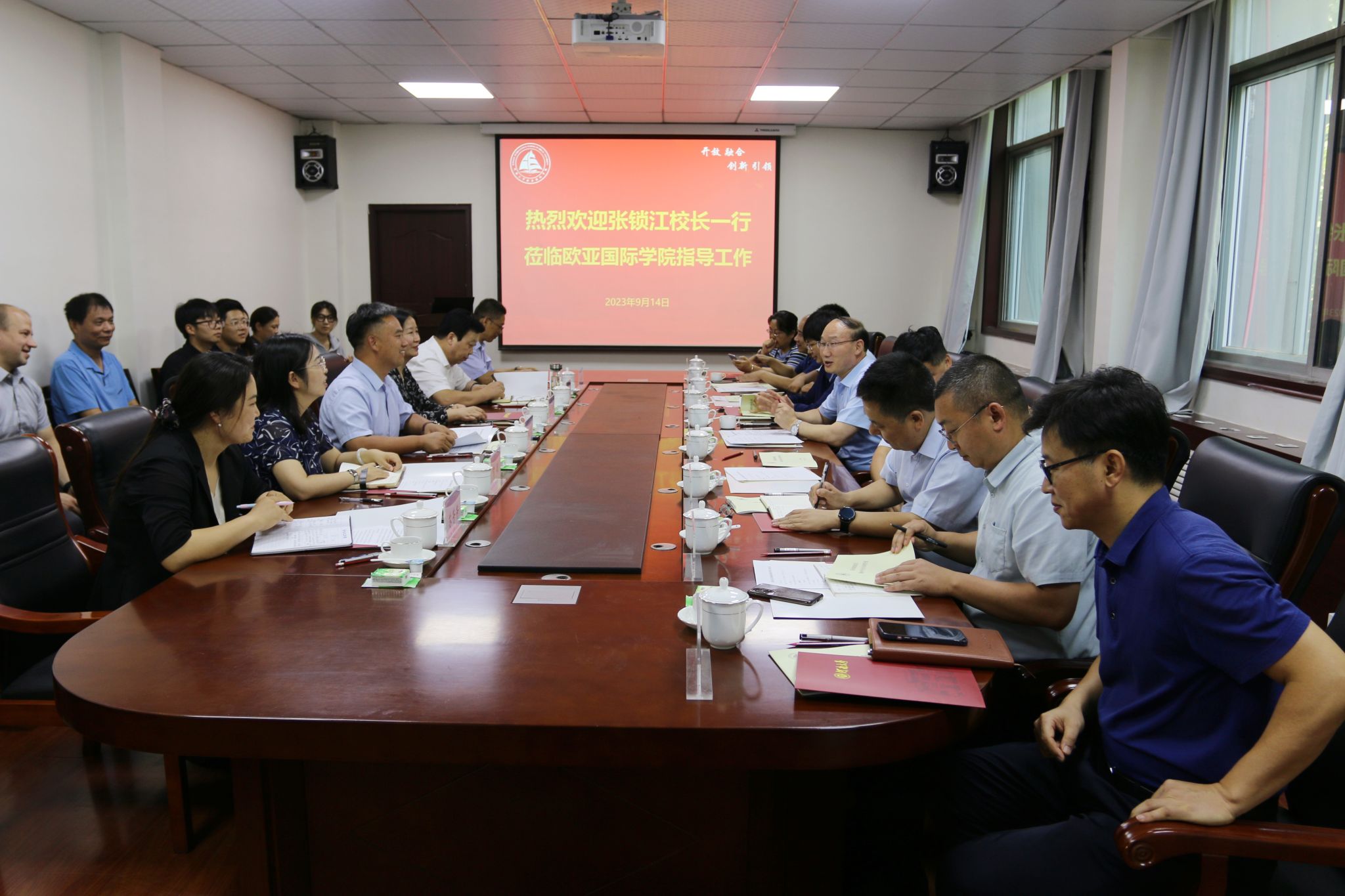 王振存代表学院向张锁江校长和各职能部门负责同志莅临学院调研指导表示衷心感谢。他表示张锁江校长对学院国际化发展提出了更高的要求,为学院发展打开了格局、开阔了视野、指明了方向,学院将认真梳理调研提出的宝贵意见,进一步理清思路、解放思想、开拓创新,强化使命感、责任感,积极探索党建引领国际教育高质量发展道路,推进学院全面转型、内涵特色高质量开放发展,助力学校研究型、综合性、国际化一流大学建设。