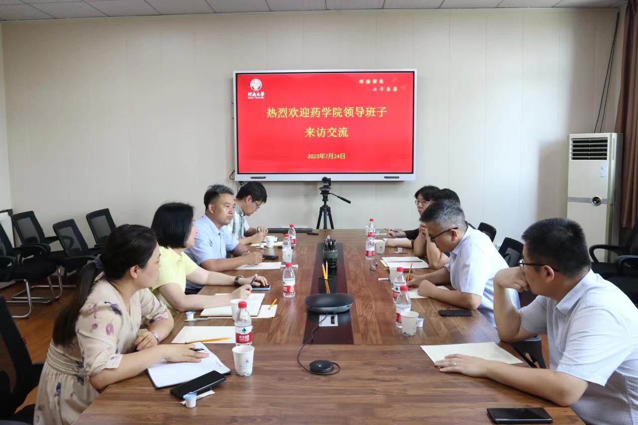 7月24日下午,药学院党委书记梁刚、院长师冰洋、副院长武毅君、副院长王岩松一行四人来我院交流访问。学院党委书记王振存、院长毛立群、副院长苏芳芳以及学院相关工作人员参加了座谈会。座谈会在学院205会议室举行。毛立群主持会议。