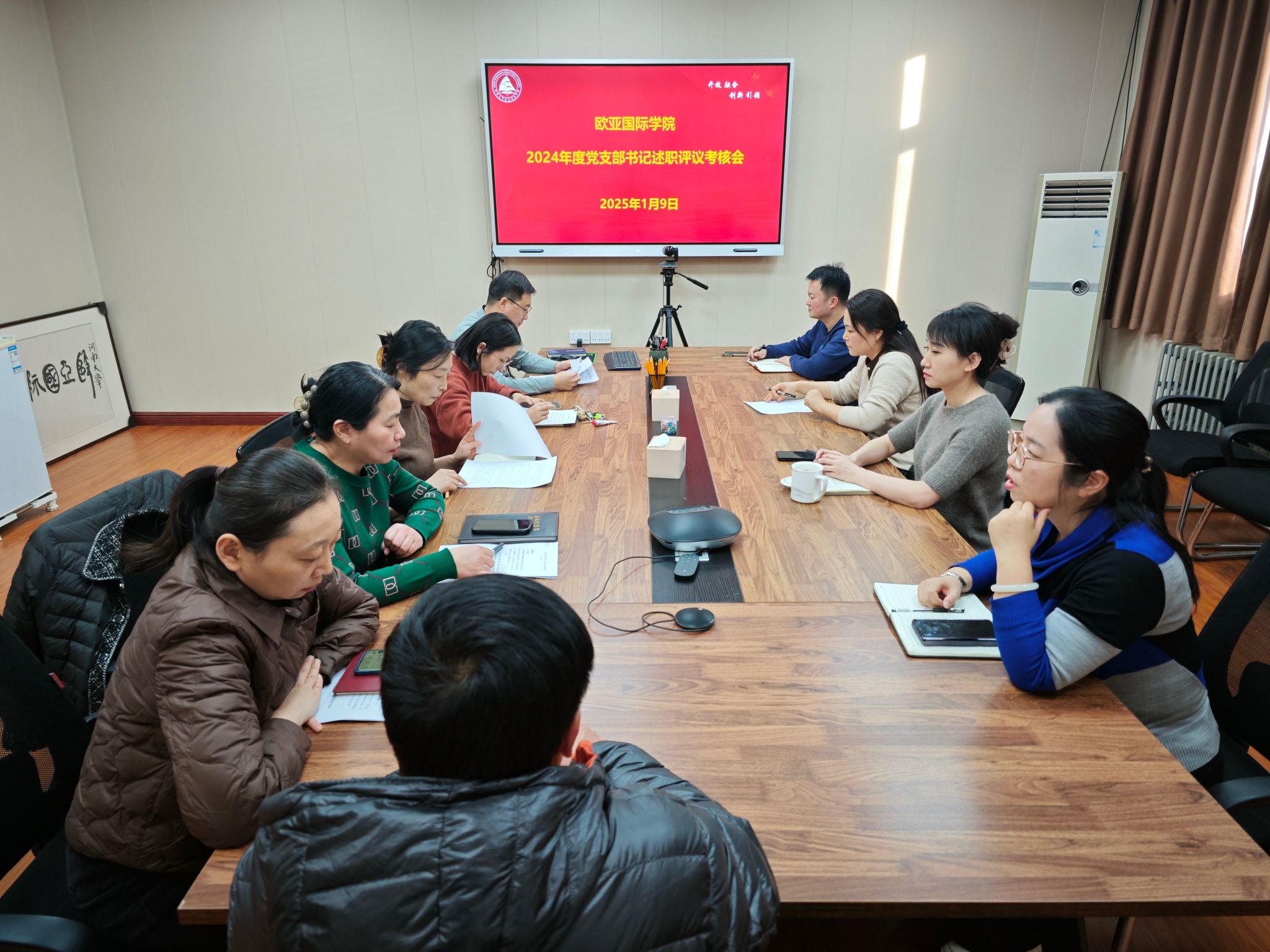 于学院二楼205会议室召开2024年度党支部书记述职评议会。学院党委委员及各党支部书记参加此次会议,会议由学院党委副书记贺颖主持。