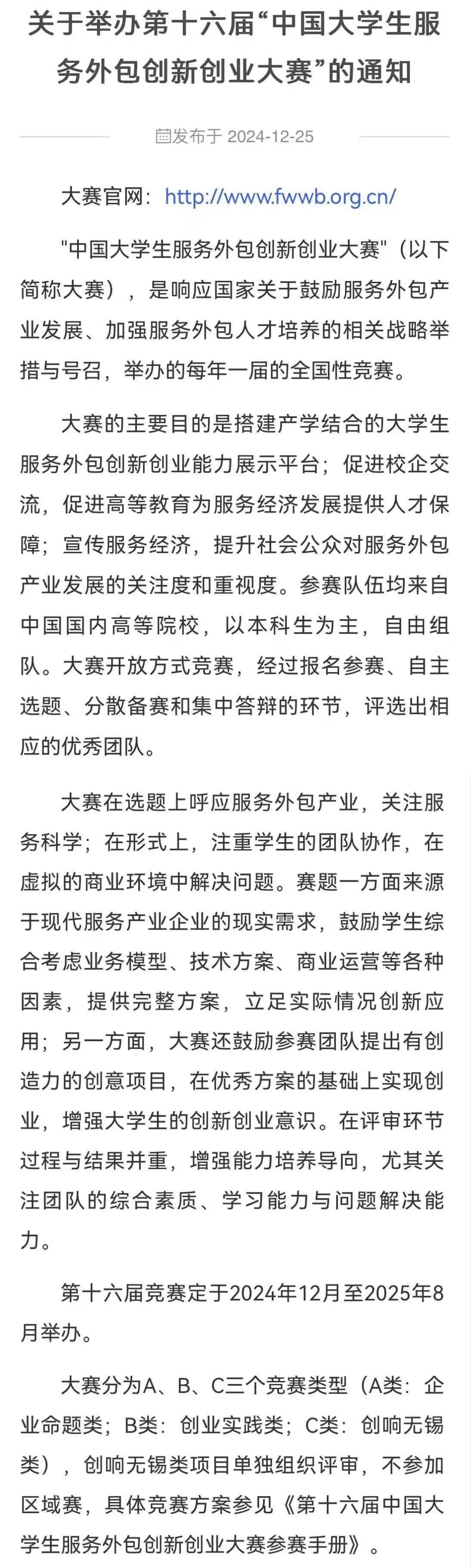 竞赛通知 | 关于举办第十六届“中国大学生服务外包创新创业大赛”的通知 SPBO手机版