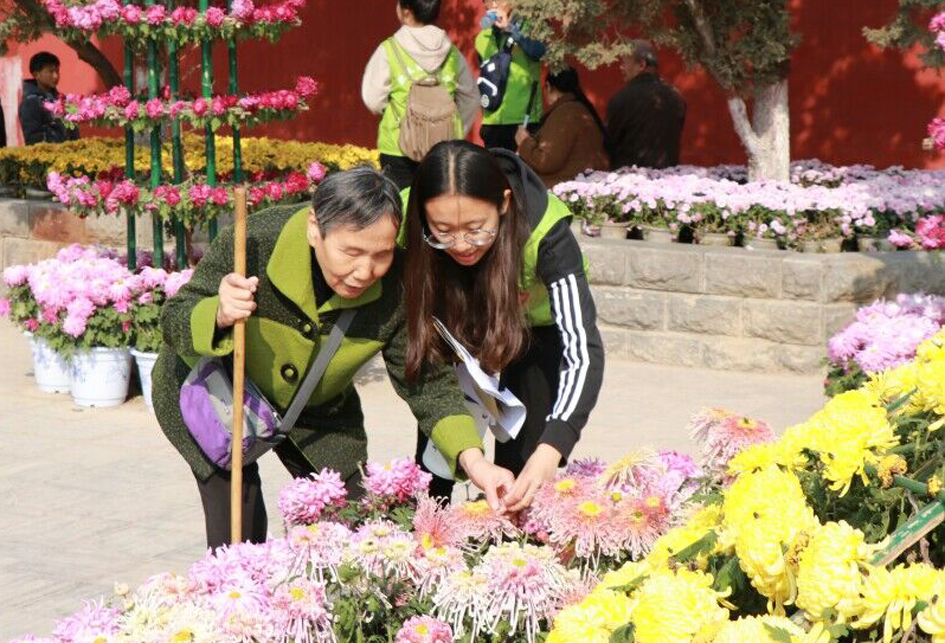 2017年11月4日,SPBO手机版 青协组织50名同学,赴开封龙亭公园,与开封市青协合作开展“我是你的眼”助盲赏菊志愿服务活动。