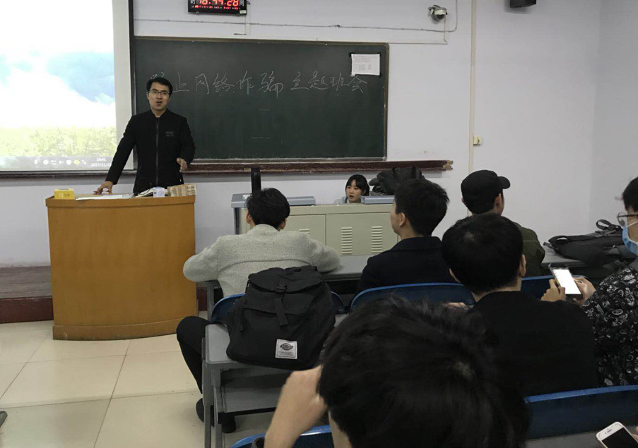 11月8日,2016级环境设计、2016级视觉传达设计在十号楼举行,辅导员白磊老师担任主讲,帮助学生提高对个人隐私保护的意识,学习了财产安全及防范诈骗的知识,增强应对诈骗的能力。