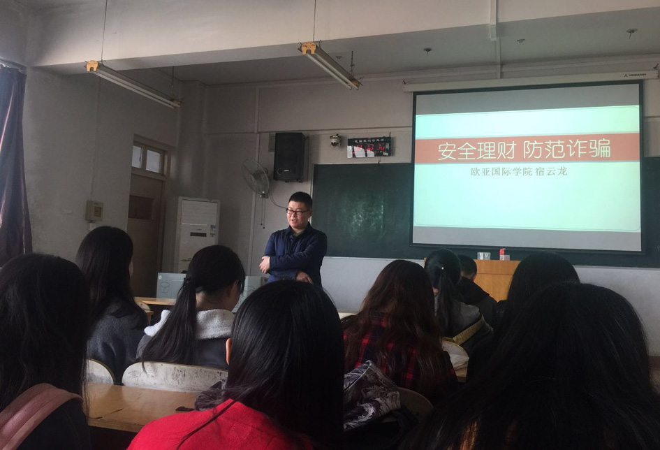 11月9日上午,2017级环境设计、视觉传达设计专业“安全理财 防范诈骗”主题活动在艺术学院405教室举行,辅导员刘香宇老师进行了主题讲解。