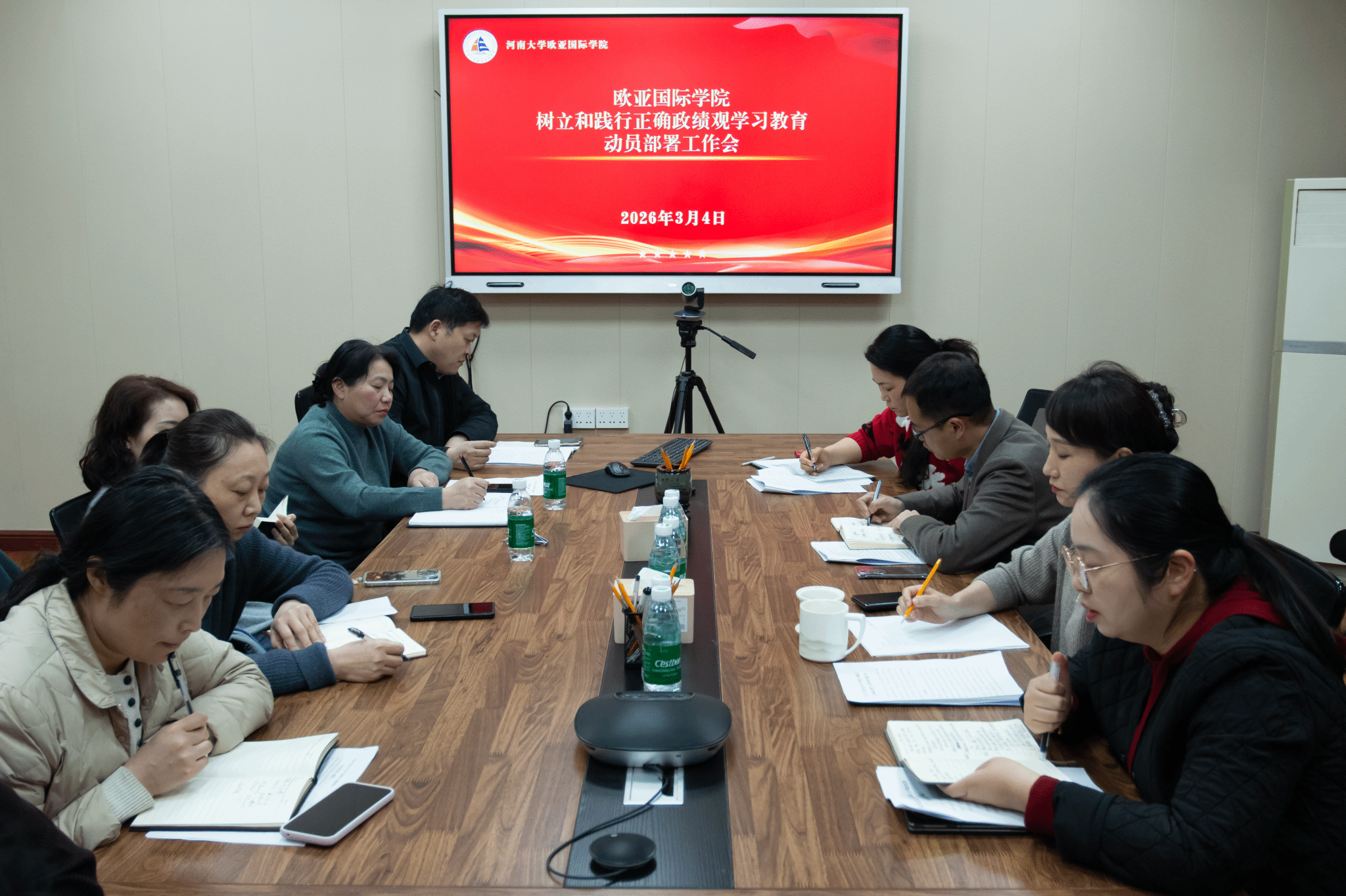 会议强调,开展树立和践行正确政绩观学习教育,是党中央作出的重要政治部署,是深刻领悟“两个确立”的决定性意义、坚决做到“两个维护”的具体行动。要始终把对党忠诚融入立德树人全过程、办学治校各方面,以正确政绩观引领学院高质量发展,坚决摒弃急功近利、重形式轻实效等突出问题,引导全体党员干部沉下心来打基础、谋长远,切实把思想和行动统一到上级及学校党委决策部署上来,以高度的政治自觉、思想自觉和行动自觉投入学习教育。