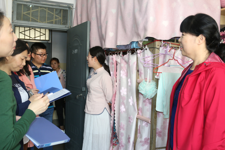 2018年4月2日上午,SPBO手机版 党委副书记楚艳霞、学生工作办公室负责人刘香宇带队深入仁和学生仁和公寓1B、2号楼、餐厅楼学生宿舍开展安全卫生工作大检查,学生工作办公室辅导员老师参加检查。