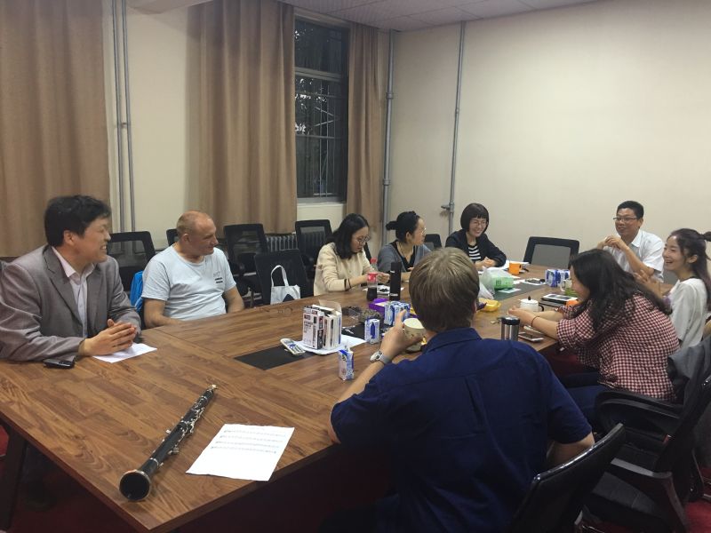 本次沙龙活动分为才艺表演、自我介绍、学术讨论、游戏互动等多个环节。外教Corey一曲精彩的单簧管《欢乐颂》点燃了全场的气氛,沙龙在老师们雷动的掌声中开始。之后,Corey和Marek以轻松调侃的方式引导大家用英语从各自的专业,兴趣爱好,喜爱的书籍以及工作和生活中的感悟等方面进行自我介绍,并对各自不同的专业领域进行探讨。在最后的游戏环节中,设置了英文绕口令比赛和“我说你猜”猜词游戏。在“我说你猜”猜词游戏中,主持人将事先准备好的英文单词展示在屏幕上,猜词者背对屏幕,根据在座教师的英文形容,猜出展示的单词。猜词过程中笑点百出,大家都笑得前仰后合,充分享受到了英语的乐趣。沙龙活动在轻松愉悦的氛围中结束,老师们都表现得意犹未尽。