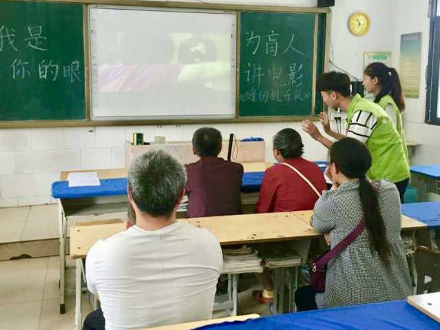 我院青年志愿者协会开展“我是你的眼”为盲人讲电影活动