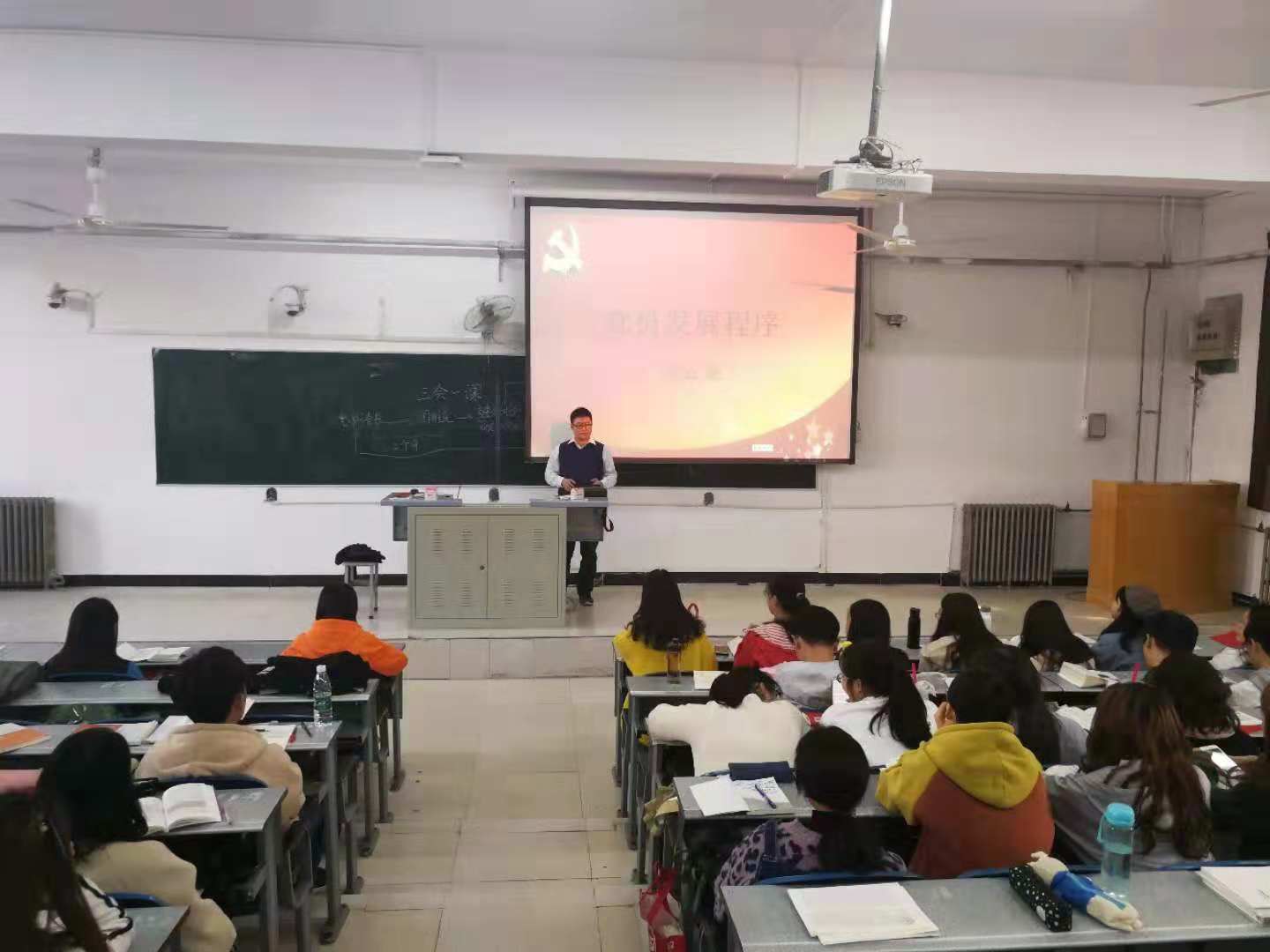 生命科学学院党委副书记张亚歌为入党积极分子们深入讲解了习近平新时代中国特色社会主义思想的内涵,使同学们对新时代坚持和发展中国特色社会主义的总目标、总任务、总布局、战略布局、战略步骤‘发展方向、发展方式、发展动力和政治保证等基本问题有了全面的了解。
