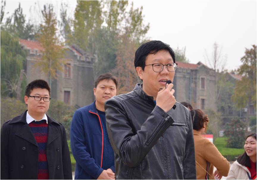 在河南大学南门前,SPBO手机版 英语教研室张永钢老师首先向大家讲述了河南大学建筑群中西合璧的建筑风格、建造过程、“明德新民 止于至善”校训的含义以及“河南大学”校名几度变迁的历史。在欧美留学预备学校遗址前,开封市志愿者协会的老师们详细讲解了预校以及6号楼的历史和建筑风格。随后,在博雅楼前,学院党政办公室副主任宿云龙老师向盲人朋友们生动地描述了温婉古朴的博雅楼(7号楼)的历史、基本构造和建筑风格。盲人朋友们惊叹不已,脑海中想象着这座“美女楼”的华丽庄重与活泼可爱。稍后,大家来到了有着三百年历史的贡院碑处,志愿者们认真讲解了石碑上的内容。在河南大学的标志性建筑大礼堂前,学院党委副书记黄鑫向盲人朋友们详细讲解了大礼堂的建筑风格、内部构造、历史传承以及其所代表的河大精神。志愿者们之后又带领着盲人朋友游历了东西十二斋房,马可音乐广场,铁塔湖等景点。游览中,盲人朋友们认真聆听讲解,并在志愿者同学们的带领下仔细触摸着河南大学的一砖一石、一草一木,细细感受,以特殊的方式体会着河南大学的古朴、庄严与沧桑。