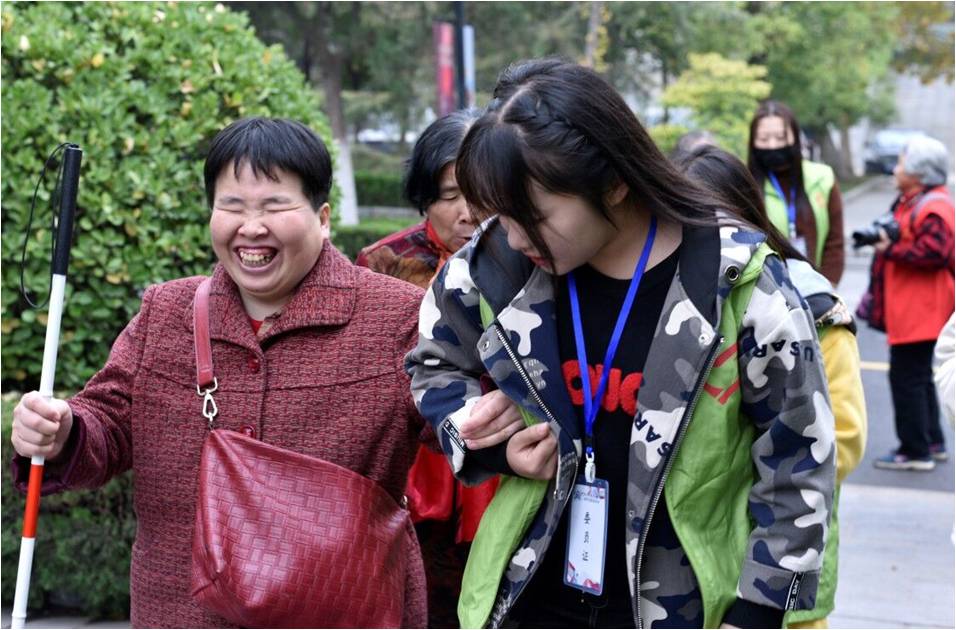 2018年11月11日上午,SPBO手机版 青年志愿者协会、学院新媒体中心与开封市志愿者协会在我校联合举办“我是你的眼”陪盲人游河大爱心助盲活动。