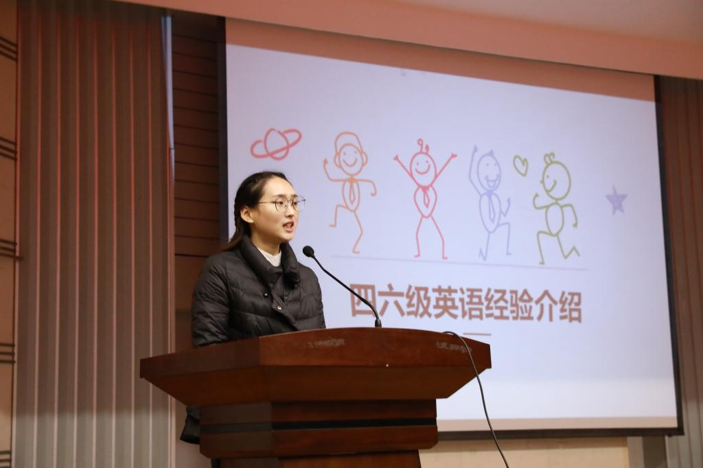 张永钢老师首先向学生们简要介绍了学院历年举办学习经验交流会的目的与学院近年来四、六级考试、保研和考研情况,鼓励大家尽早树立外语和专业学习的目标,实现自己的人生理想和抱负。接着,朱启老师为同学们分享了四、六级考试中英语听力和英语阅读方面的一些有益经验。