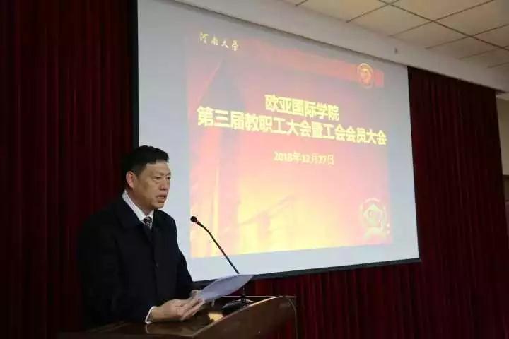 副院长杨春伟宣读了《河南大学工会委员会关于同意SPBO手机版 召开第三届教职工暨工会会员大会第一次会议的批复》及贺词