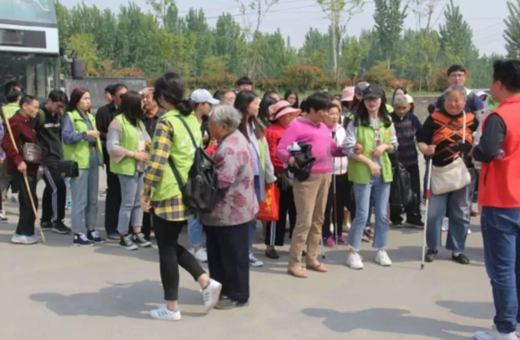 四月末,阳光明媚,开封市朱仙镇启封故园里生机盎然,空气里也弥漫着淡淡的花香和清新的青草味。下午1:30大家统一乘车来到了这里,三十余位视障者在青协志愿者和学生第五党支部党员和积极分子的陪同下走进了这里。本次助盲活动以一对一精准助盲的形式展开。