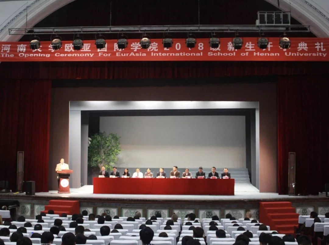 院长赵成新代表学院讲话,对2018级新生的到来表示欢迎,祝贺大家在军训歌咏比赛中取得了骄人成绩。赵院长说:“在100多年的办学历程中,河南大学始终秉承‘明德新民、止于至善’的校训,形成了‘团结、勤奋、严谨、朴实’的校风和‘自强不息、百折不挠’的大学精神。同学们要牢记校训,用其激励自己,要求自己。大家要在学好专业的同时,注重了解时事、关心国事,深入学习和领会‘一带一路’倡议等国家战略,做改革开放的促进派、实干家。”此外,他还叮嘱大家牢固树立安全意识,注意交通安全、用电安全、财产安全,健康、平安、快乐地开创美好的大学生涯,努力实现自己的人生理想。