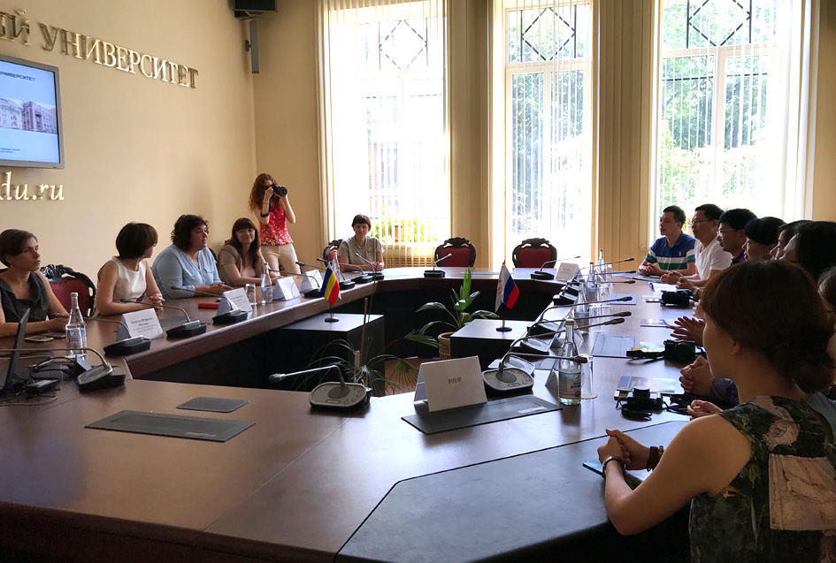 2017年7月17日-18日,SPBO手机版 党委副书记楚艳霞,教师代表刘香宇、刘佳明;艺术学院设计分院院长蔡玉硕、教师代表洪涛;新闻与传播学院教师代表强海峰,外语学院教师代表王志坚等一行7人到俄罗斯南联邦大学进行访问和交流。