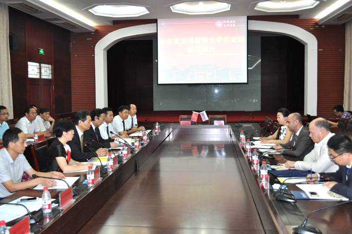 常务副校长赵国祥主持会谈并简要介绍了我校历史沿革、发展规模、学科建设、科学研究、社会服务、国际合作、发展空间等方面的情况,并表示莫斯科大学代表团的来访将会扩大我校对外开放的范围,开启我校与世界名校—莫斯科大学合作交流的新征程。