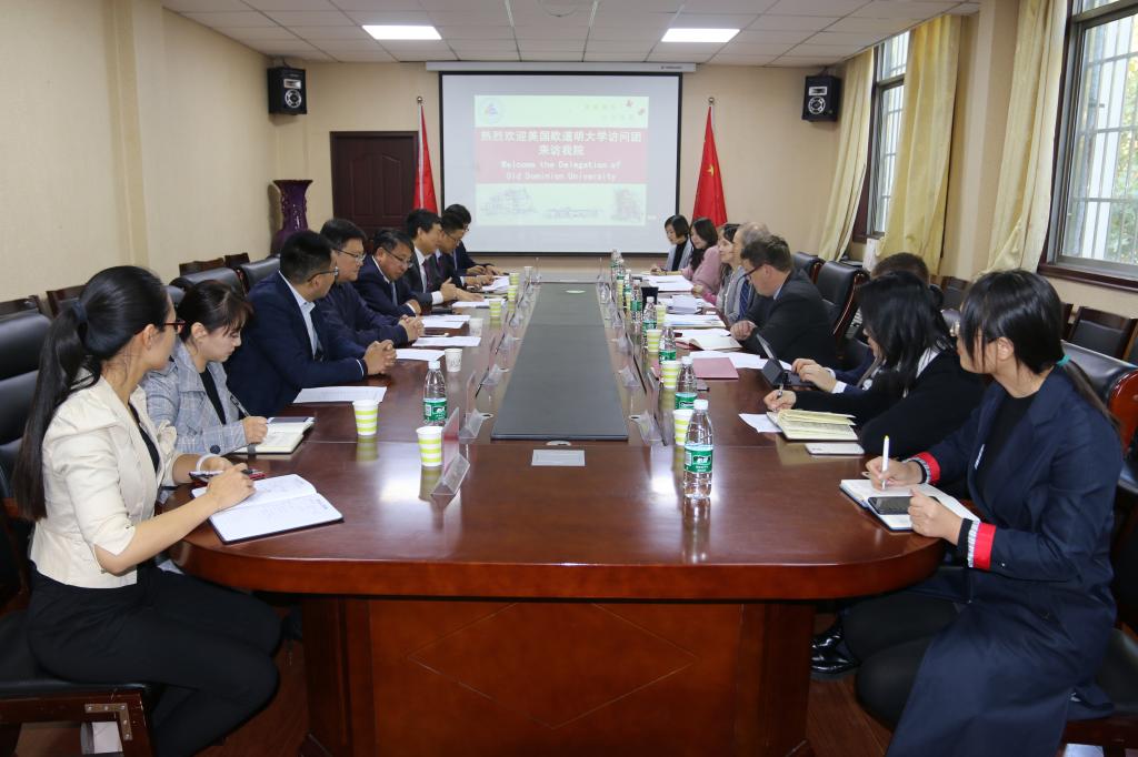 学院党委书记李卫国首先对欧道明大学客人来访热烈欢迎。他表示,双方经过多年的合作已经建立了良好的工作关系,希望进一步完善联系沟通机制,推动两校间信息交换共享,在科学研究、师生互访、联合办学等领域开展更为广泛深入的合作,探索深化合作办学的途径方法,解决合作办学中出现的问题。院长赵成新介绍了两校合作办学的发展现状与成果、面临的问题以及学校今后国际化发展的战略,希望双方加深了解,增进互信,推进两校多层次、多领域的全面合作关系建立。