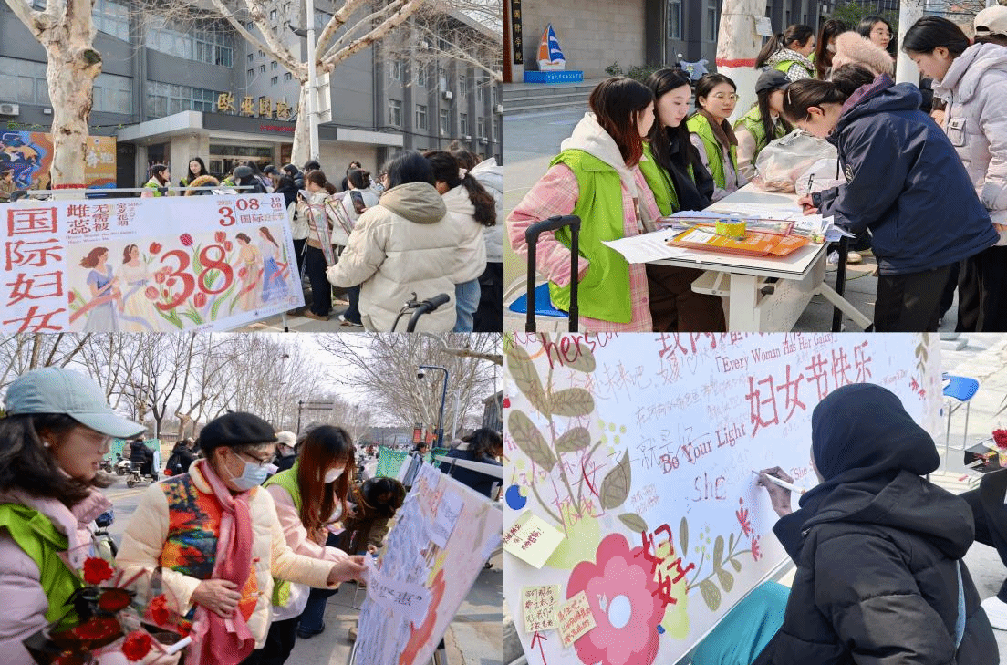 活动吸引了500余名师生参与。从设计“撕掉刻板标签”互动展板,到组织中外学生共绘“女性力量宣言墙”;从赠出600余支承载敬意的鲜花,到引导参与者以创意表达传递价值信念,每一环节都彰显学院“实践育人”的工作理念与“奉献、友爱、互助、进步”的志愿精神,为校园注入温暖与觉醒的力量。