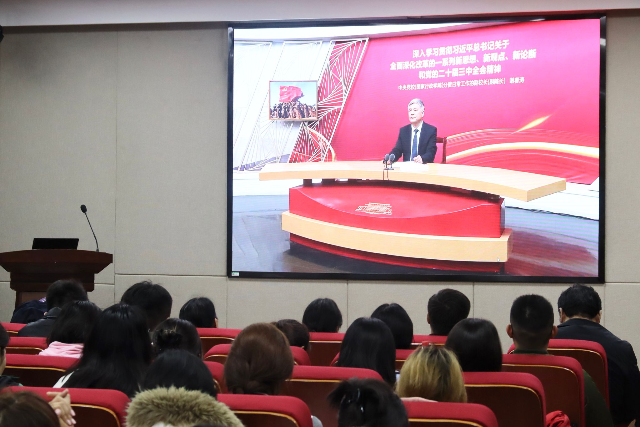 11月14日,SPBO手机版 在学院二楼报告厅组织全体党员集中学习《学习贯彻党的二十届三中全会精神培训课程》。本次课程由中央党校(国家行政学院)副校长(副院长)谢春涛同志以“深入学习贯彻习近平总书记关于全面深化改革的一系列新思想、新观点、新论断和党的二十届三中全会精神”为主题进行讲授。课程系统解读了党的二十届三中全会的核心内容和重要意义,强调了全面深化改革的必要性和紧迫性。