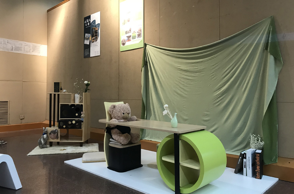 展厅内,通过对各种材料的材质属性、工艺性的理解,围绕课程本身的设计着手创意,一件件极具设计感的作品以鲜活的实物形态进行多元化展示出来。作品各具特色,其中既有根据使用状态或环境需求产生相应变化的产品,有捕捉生活细节、解决实际问题的收纳式家具类型,也有体现集约化概念的蜗居专用创新性设计作品。