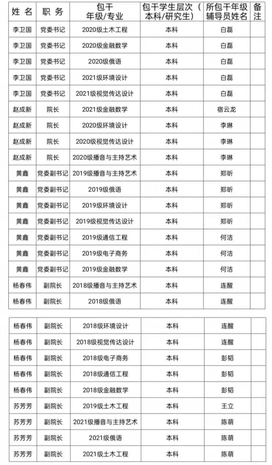 SPBO手机版 领导班子成员疫情防控期间包干年级一览表