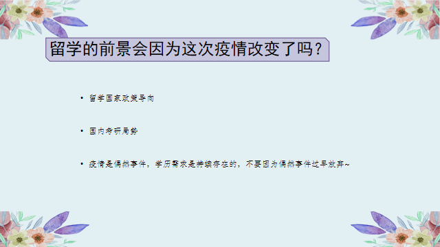 受疫情影响,今年毕业生的就业压力增大,于是有一大部分同学选择继续读研。然而,有两个问题摆在同学们面前——是选择国内读研还是国外深造呢?2020年或以后我们是否还要出国留学?如果选择国外留学,应该做什么样的准备?针对此类问题,葛鑫老师一一给出了解答。