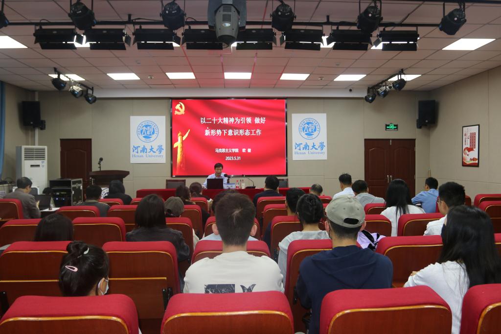 随后,马克思主义学院欧健教授作了题为《以二十大精神为指导,做好新形势下意识形态工作》的专题报告。欧健教授结合国内外意识形态方面的经典案例,为同志们深入讲解了新时期我国在意识形态方面面临的风险、机遇与挑战,并对如何做好新时期高校意识形态工作提供了思路与方法。
