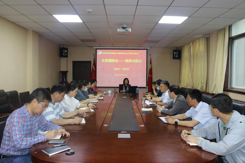 6月2日上午,院长毛立群在学院三楼会议室进行了题为“大学国际化——格局与路径”的主题教育专题讲座。毛立群结合河南大学“双一流”建设和国际化发展实践,从学校国际化办学定位、国际化发展战略与新时期关于中外合作办学的思考等方面进行了深入讲解。她表示,学院要以主题教育为契机,进一步明确办学目标、抢抓政策机遇、坚持创新思维、加强内涵建设、突破办学瓶颈,不断提高学院办学层次,提升办学质量。