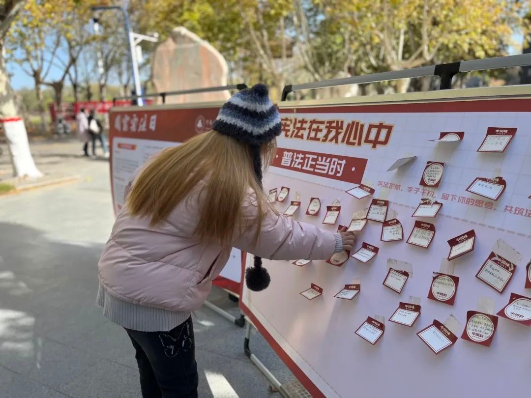 活动通过现场转转盘的形式,根据抽到的问题进行回答。参与者通过排队依次转动转盘,根据指针指向的等级选择问题并作答。问题内容涵盖了宪法的基本原则、公民的基本权利与义务、国家机构的设置等,既考验了参与者的知识储备,又增加了学习的趣味性。