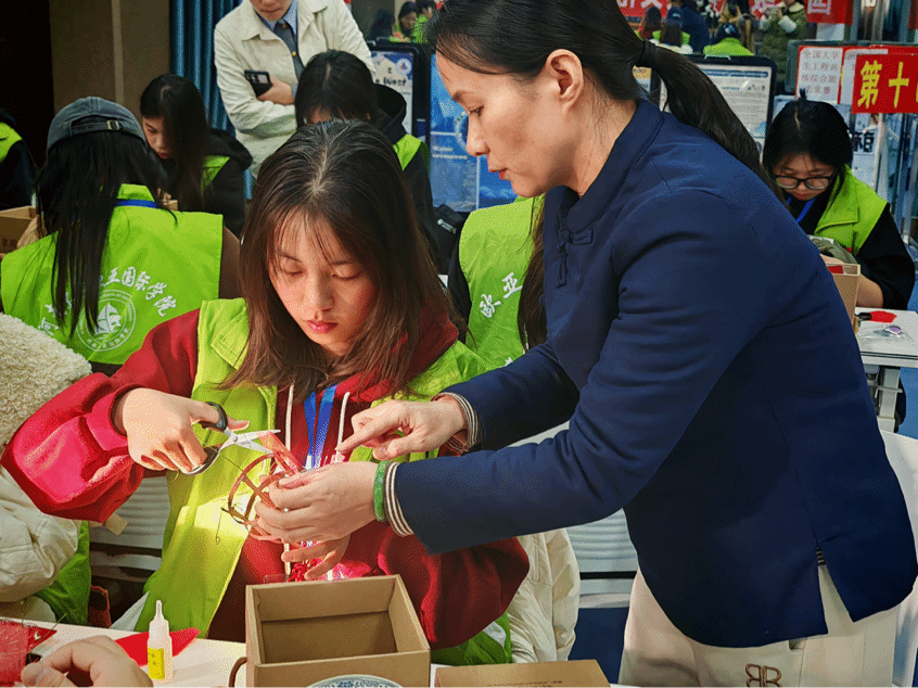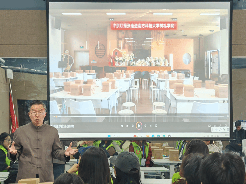 下午三点,活动正式开始。此次活动特邀“汴京灯笼张”第七代传承人张俊涛老师和张俊丽老师亲临指导。张俊涛老师通过视频讲解了家族传承的悠久历史和“汴京灯笼张”背后的艺术魅力,让志愿者们全面了解这一千年技艺的文化根源和传承故事。张俊丽老师随后现场示范了灯笼制作的基本技法,志愿者们纷纷动手实践,深入体验传统技艺的独特韵味。在传承人的耐心指导和志愿者们的悉心钻研下,大家成功完成了一盏盏精美的汴京灯笼。制作过程中,志愿者们不仅感受到了传统工艺的精妙,更深刻体会到非遗文化蕴含的历史智慧和人文精神。