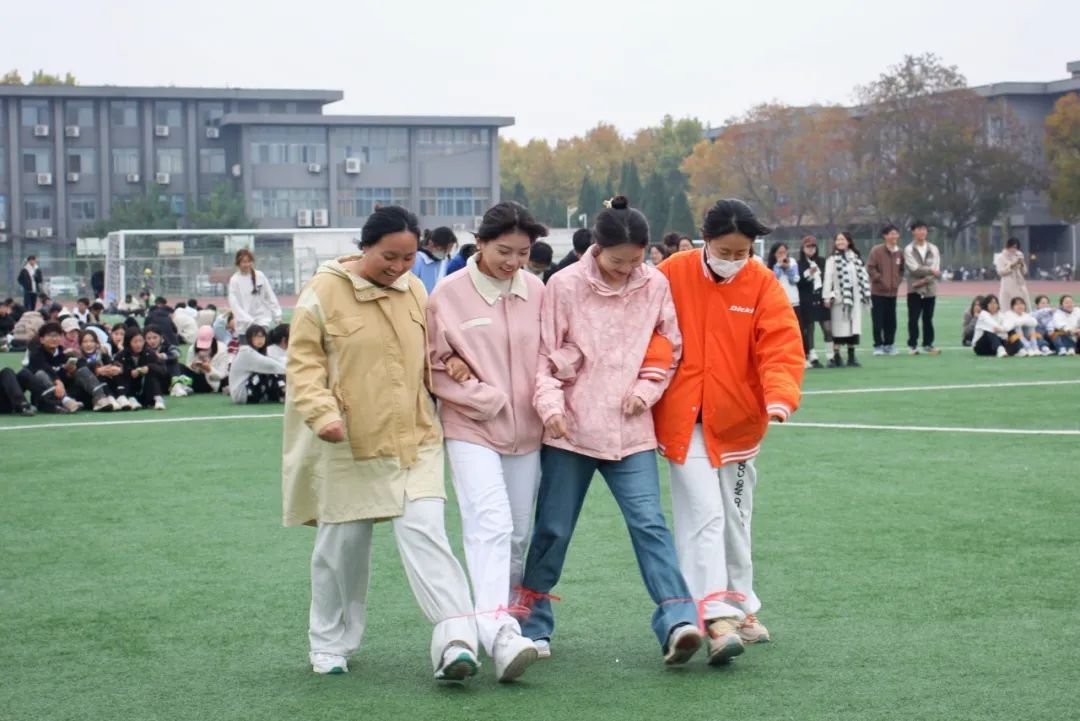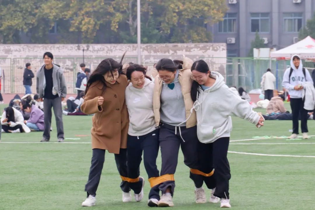 除了常规田径项目外,本次秋季运动会还特别设置了一些趣味性更强的集体项目,比如“拔河比赛”、“四人五组”和“心心相印”等。