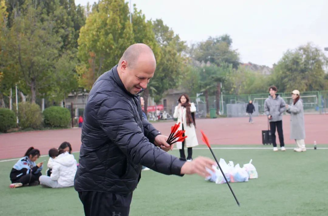 在这个充满活力的赛场上,我们的教师项目火热进行中!平日里严谨细致的老师们纷纷化身为赛场上的“运动健将”。无论是趣味十足的“投壶”,还是充满挑战的“乒乓球绕桩”“套圈”和“拔河比赛”,都展现了他们不一样的活力和风采。老师们全力投入、团结协作,观众们的欢呼声此起彼伏,气氛热烈,老师们的拼搏与默契激励了在场的每一位学生,让整个赛场洋溢着欢笑与感动。