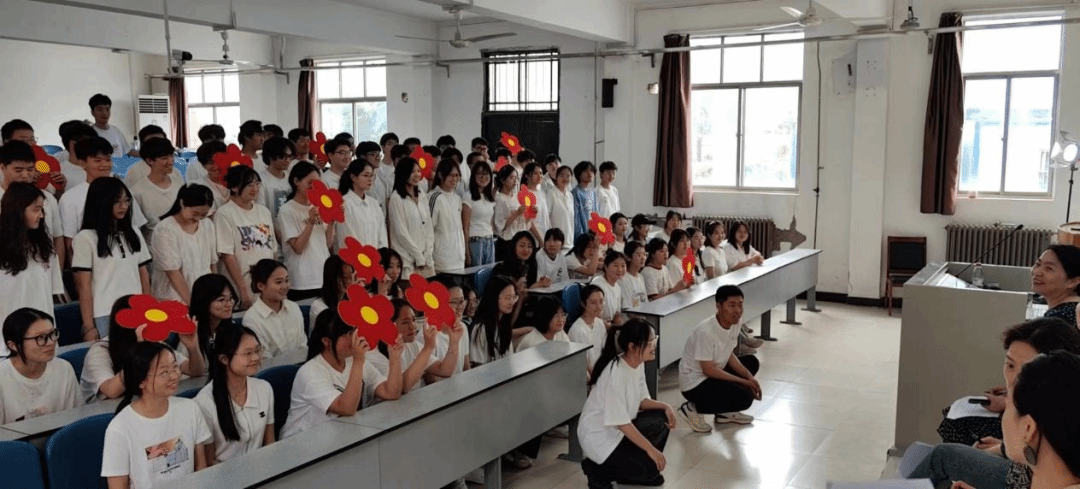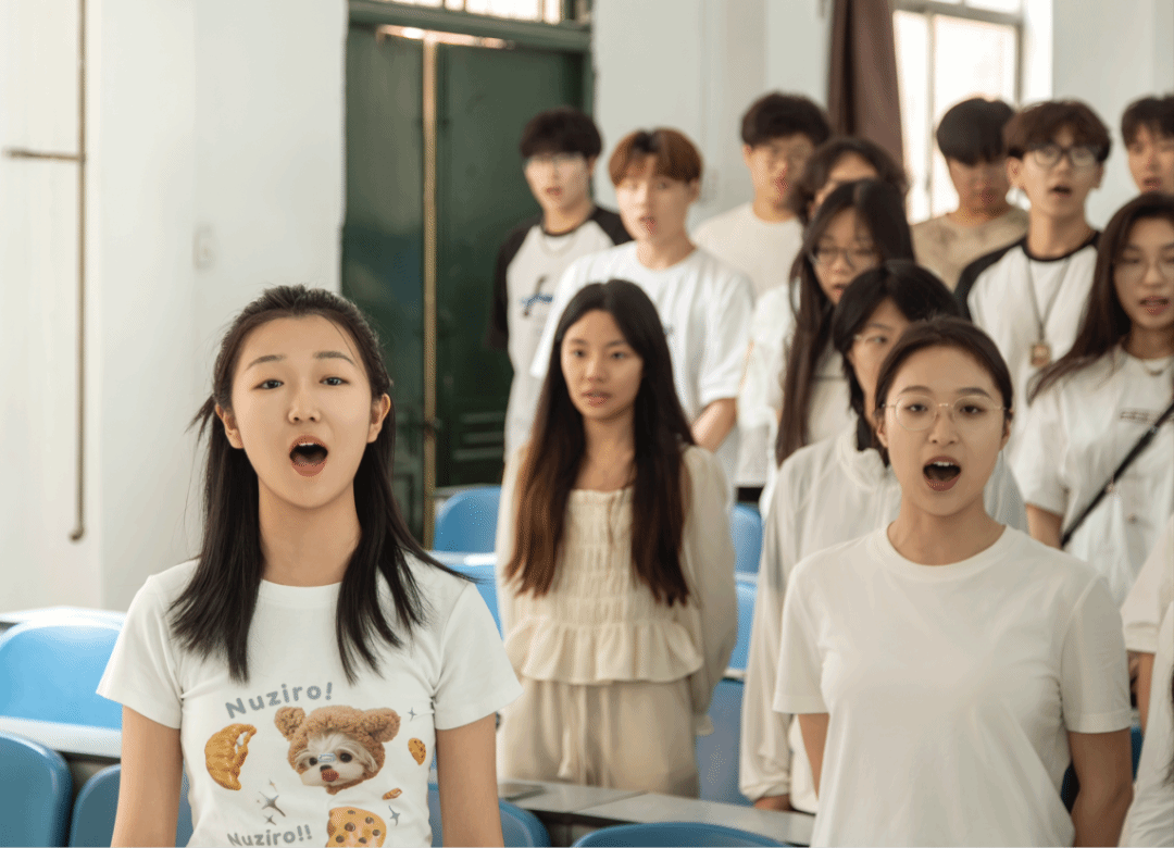 视觉传达设计专业的同学们率先登场。他们身着统一的服装,队列整齐,精神抖擞。随着激情的指挥、深情的领唱,嘹亮的歌声在会场中回荡,每一句咏唱都饱含对河大的热爱。