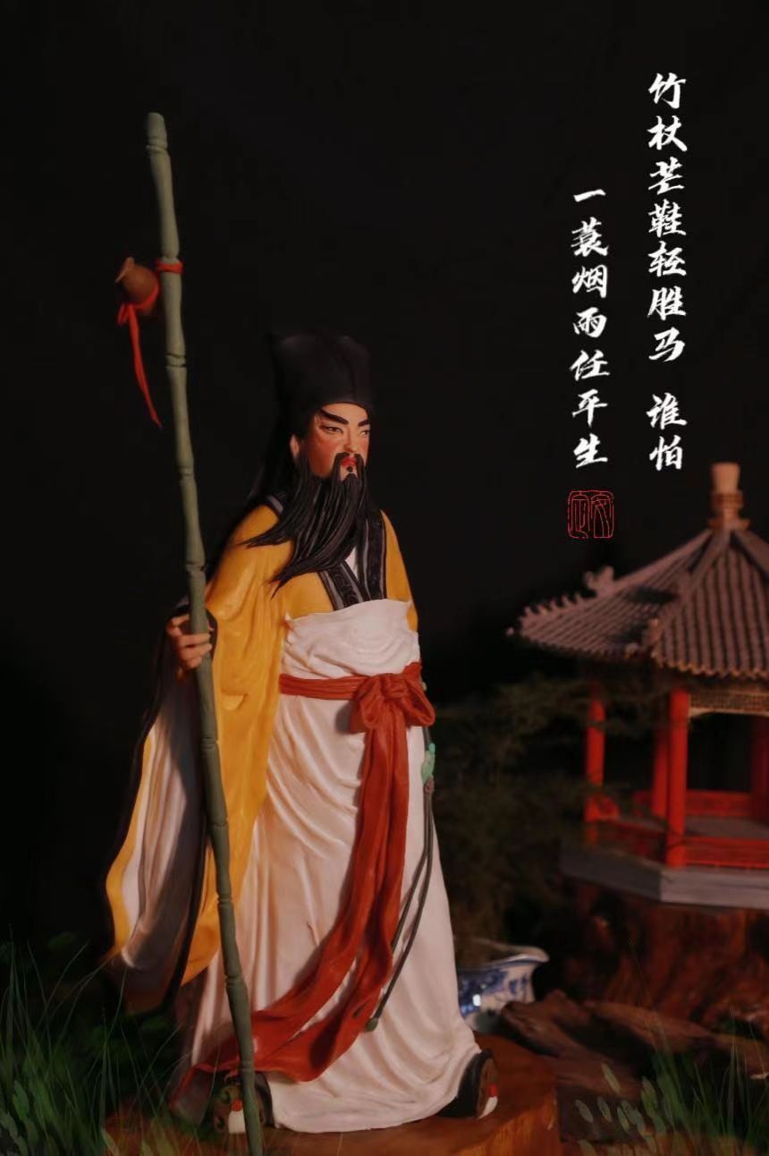 李书闯进行面塑创作的过程中,他最大的挑战在于设计和构思。他不仅需要深入学习传统文化,还要不断地进行创新,以使传统题材的人物形象与当代人的审美需求相契合。当他塑造人物的面部时,他专注而认真地一捏、一揉、一搓,以熟练的手法运用刻刀细致地刻画出人物的细节,力求达到完美。在他的巧手下,神话人物和历史人物都栩栩如生,个性鲜明,形象生动。从一个个普通的面团到一尊尊活灵活现的造像,李书闯赋予了它们鲜活的生命力,也成功开启了自己的“文化人生”。