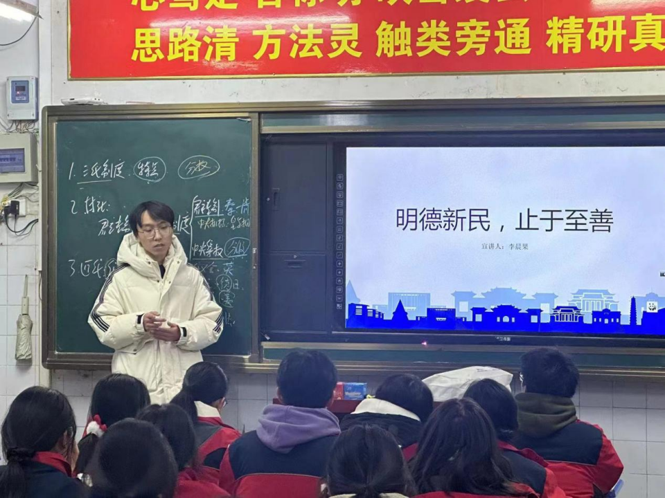 我院2023级本科生杨烁、董沐言、王佳姚、李晨果、刘景文、潘旭冉在假期期间回到各自的母校,通过演讲等形式,与在校师生进行了深入交流,详细介绍了我校的专业设置、师资情况、校园环境、学术氛围以及丰富的课外生活,使学弟学妹们对大学生活有了更加清晰和具体的认识,也对河大这所百年老校产生了向往之情。