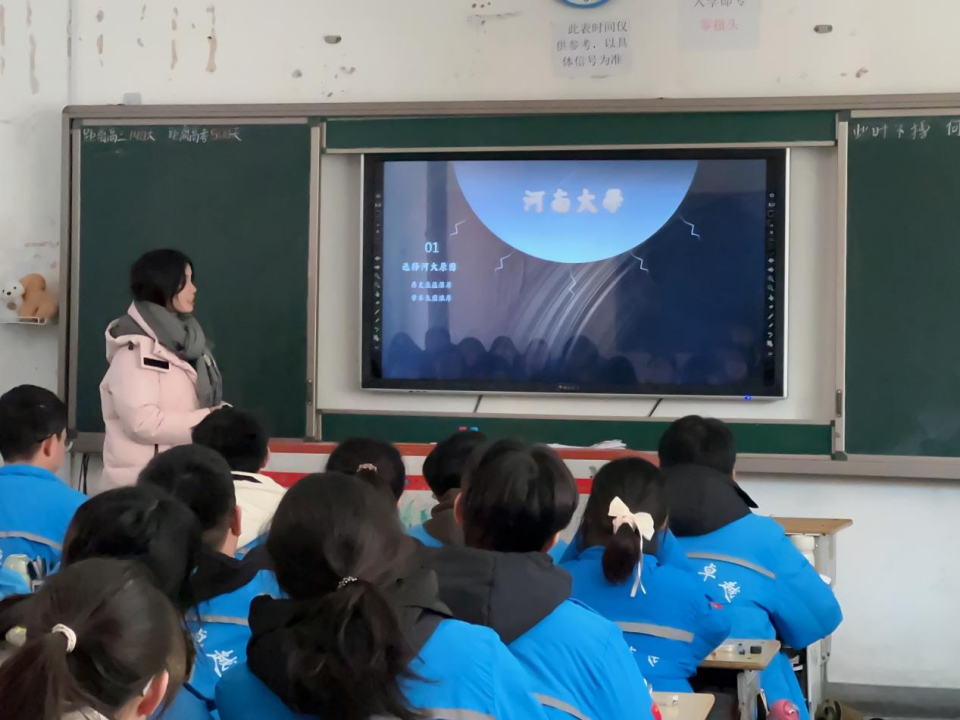 寒假期间,校团委号召学生与招生办公室共同组建“相约河大,共赴青春”专题实践团队,鼓励在校本科生回访高中母校,介绍我校办学成果,帮助高中学子了解大学生活,建立起高中母校与河大有效沟通的桥梁。