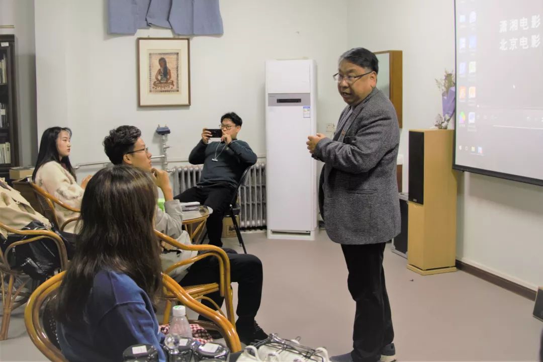 影视沙龙活动在学院四楼影视欣赏工作室举行。学院党委书记李卫国与学生代表探讨电影、交流感受。