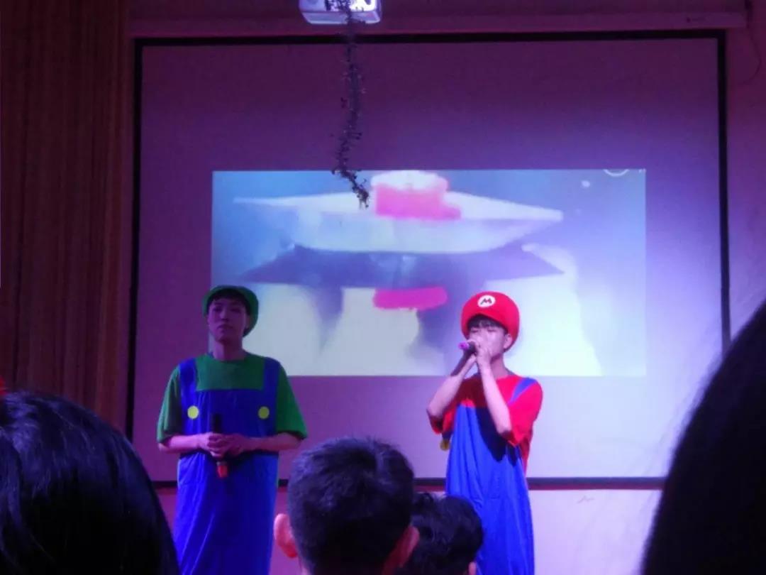 播音与主持艺术专业同学们带来的配音秀《英雄不朽》,让观众们回忆起了自己独有的游戏经历。一波未平,高潮又起。由校歌赛冠军刘开心、季军邢明辰带来的《动漫歌曲串烧》,引发了全场的高潮。身穿马里奥服装的两人,带着观众们一起重温一首首经典歌曲,仿佛又让观众回到了那无忧的岁月。由校触角动漫社带来的《Butterfly》,魔术社带来的神奇的魔术,也让观众印象深刻。