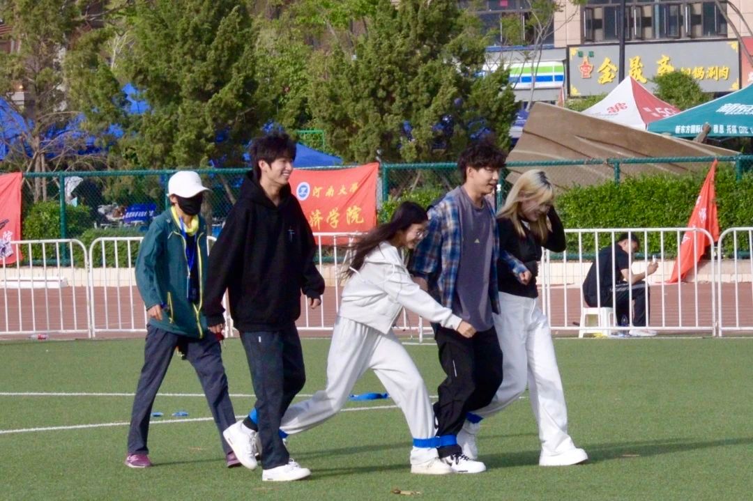 接力赛将气氛推向高潮——男子、女子4×100米接力项目中,四名男子队员:2024级视觉传达设计专业侯宁宇、2024级视觉传达设计专业郑毅、2024级环境设计专业刘浩、2024级环境设计专业程传霖。四名女子队员:2024级播音与主持艺术专业裴雨晴、2024级播音与主持艺术专业袁航、2024级学前教育专业徐子涵、2024级学前教育专业刘博研默契无间,交棒瞬间的眼神交汇、冲刺时刻的全力爆发,传递的是信任,凝聚的是团魂。看台上旗帜挥舞,“欧亚加油”的呼声回荡全场。
